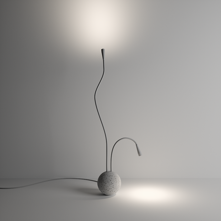 ocupando-se do verbo ler, a tetro arquitetos criou luminárias de piso e cabeceira que partem de uma perfeita esfera de concreto e se irradiam em hastes flexíveis cuja ponta contém um ponto luminoso. a seguir, carlos maia, arquiteto da tetro, detalha o processo de criação da peça.